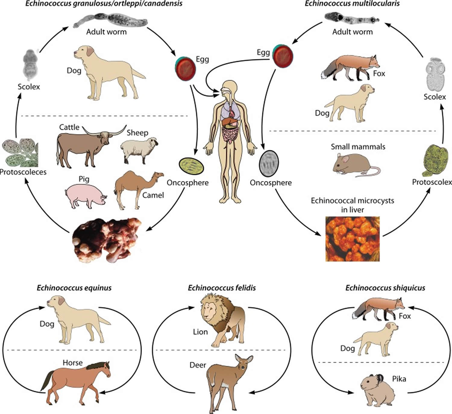 76. Romig T, Deplazes P, Jenkins D, Giraudoux P, Massolo A, Craig PS, Wassermann M, Takahashi K, de la Rue M. 2017. Ecology and life cycle patterns of Echinococcus species. Adv Parasitol 95:213–314. doi: 10.1016/bs.apar.2016.11.002[]